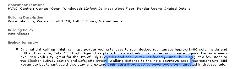 This beautiful NoLita condo includes a roof deck, washer/dryer, 1.5 baths and provides easy access to the downtown area if you catch the broker’s drift: