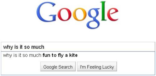 Seriously. Why is that fun? Evidently I’m not the only one who doesn’t get it. And you know what? Google doesn’t even have an answer to it. You know why? Because kites are fucking stupid. Yeah, OK, if you’re, like, five, anything that’s sort of like flying is cool. But other than that, kites are dumb.