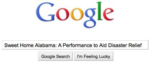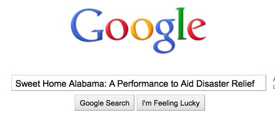 If you Google “Sweet Home Alabama: A Performance to Aid Disaster Relief” you don’t get any automatic suggestions. But you do get a northern spin on a southern classic and an easy and duly rewarding way to contribute to the relief efforts in Alabama.