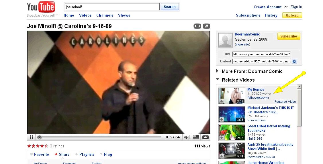 Then, while I was on the YouTube enjoying the comedy stylings of my friend Joe Minolfi at Carolines — funny stuff — I got distracted by one of the “related” video suggestions on the right side of the page.